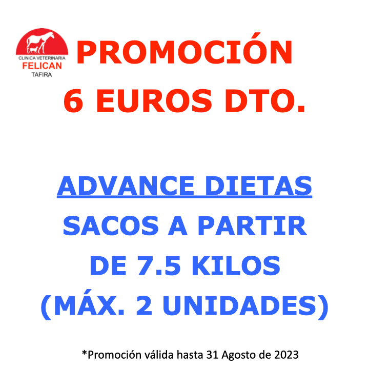 PROMOCIÓN - 6 EUROS DTO. ADVANCE DIETAS - SACOS A PARTIR DE 7.5 KILOS (MÁX. 2 UNIDADES) *Promoción válida hasta 31 Agosto de 2023